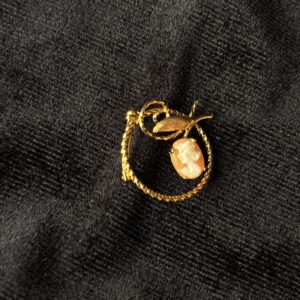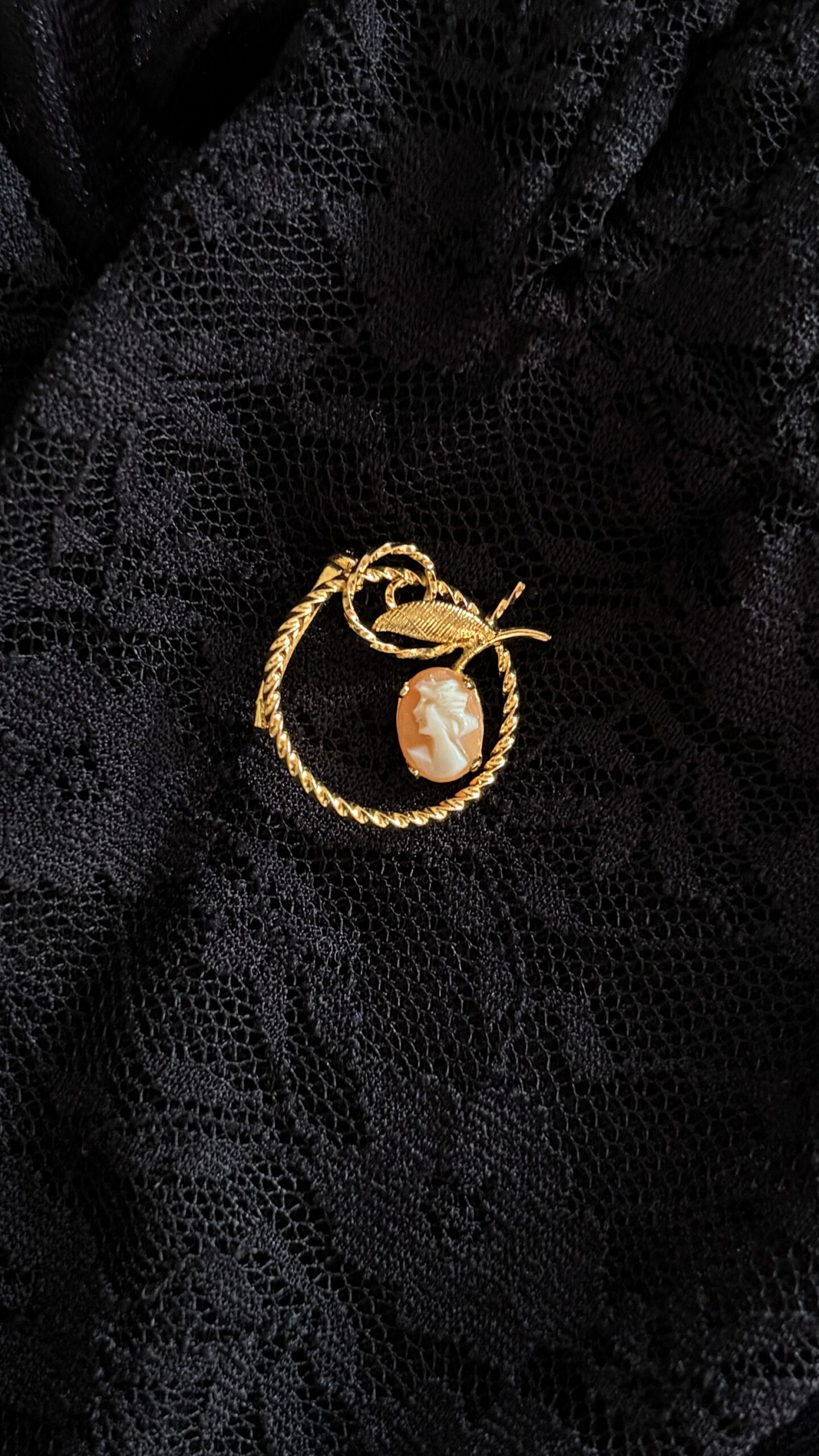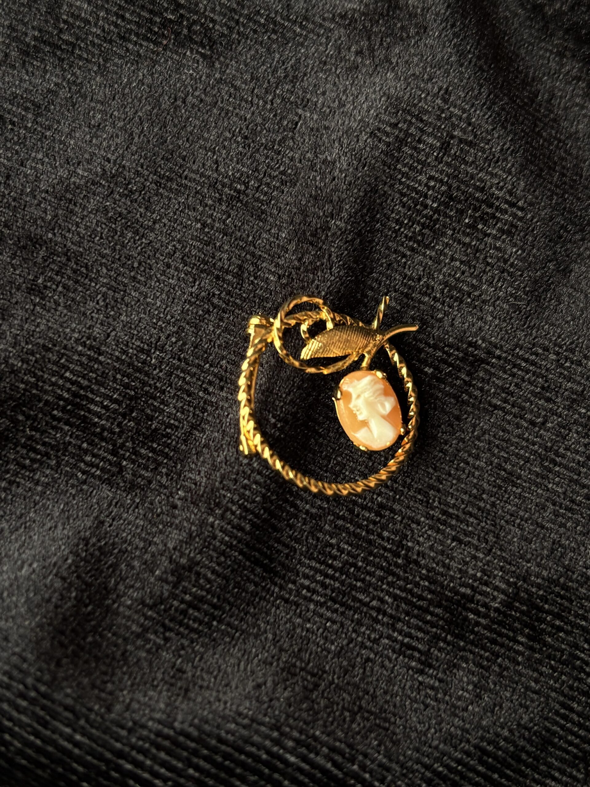 Mini broche de camafeo vintage en forma de medallón, tallado en concha, cierre de aguja con pasador, marcado 12GF Mide 2cm